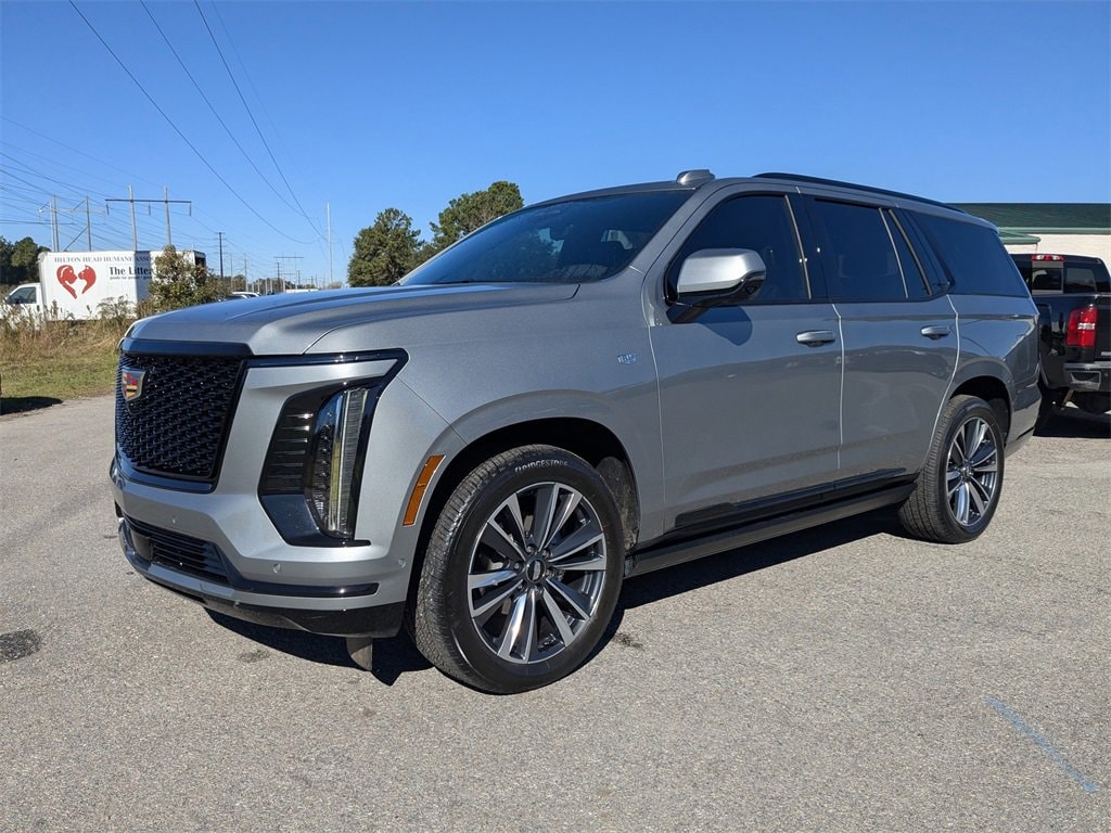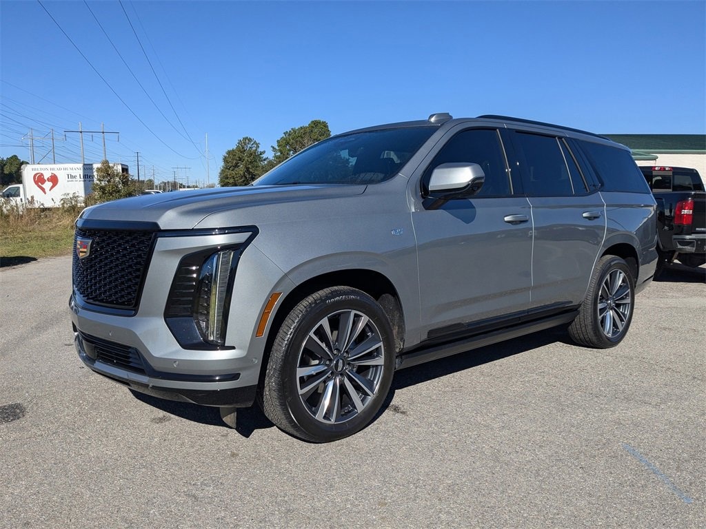 2025 Escalade Sport Certified. LOCAL TRADE IN, CERTIFIED PRE-OWNED, CLEAN CARFAX HISTORY, ONE OWNER, SUNROOF/MOONROOF, Rear Entertainment, Power Assist Steps, Escalade Sport, 4D Sport Utility, 6.2L V8, 10-Speed Automatic, 4WD, Argent Silver Metallic, Black Leather. CARFAX One-Owner. 4WD Clean CARFAX. Cadillac Certified Pre-Owned Details:* Limited Warranty: 12 Month/Unlimited Mile (whichever comes first) after new car warranty expires or from certified purchase date* 172 Point Inspection* Courtesy transportation & 24 hour Roadside Assistance for the life of the warranty and stringent 172-point inspection & reconditioning process. SiriusXM 3-month trial subscription.* Vehicle History* Transferable Warranty* Roadside Assistance* Warranty Deductible: $06.2L V8 10-Speed AutomaticYou'll do better at Hilton Head Buick-GMC-Cadillac. 843-815-1500, serving Hilton Head Island, Bluffton, Beaufort and everyone coast to coast.