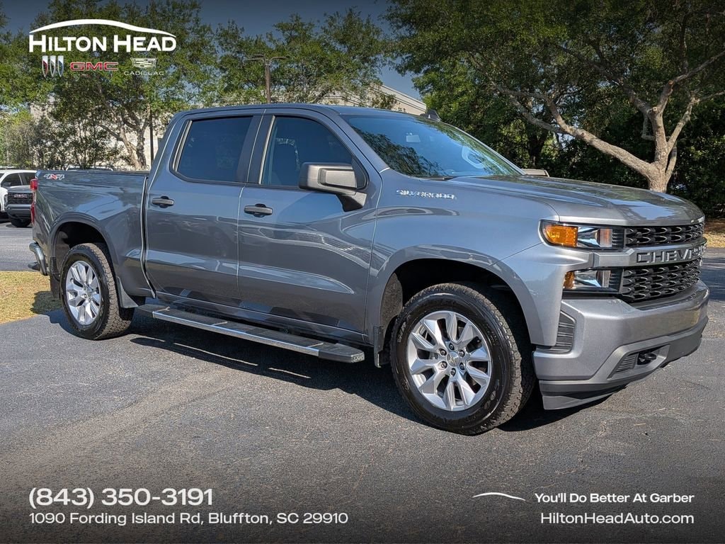 2021 Silverado 1500 Custom LOCAL TRADE IN, CLEAN CARFAX HISTORY, 4X4 FOUR WHEEL DRIVE AWD ALL WHEEL DRIVE, Silverado 1500 Custom, 4D Crew Cab, 2.7L Turbo, 8-Speed Automatic, 4WD, Satin Steel Metallic, Jet Black Cloth, 170 Amp Alternator, 3.5 Diagonal Monochromatic Display, Bluetooth® For Phone, Body Color Grille, Color-Keyed Carpeting Floor Covering, Compass, Custom Convenience Package, Custom Value Package, Deep-Tinted Glass, Electric Rear-Window Defogger, Electronic Cruise Control, EZ Lift Power Lock & Release Tailgate, Front Frame-Mounted Black Recovery Hooks, Front Rubberized Vinyl Floor Mats, Infotainment Package, LED Cargo Area Lighting, Manual Tilt Wheel Steering Column, Power Door Locks, Power Front Windows w/Driver Express Up/Down, Power Front Windows w/Passenger Express Down, Power Rear Windows w/Express Down, Preferred Equipment Group 1CX, Rear 60/40 Folding Bench Seat (Folds Up), Rear Rubberized-Vinyl Floor Mats, Remote Keyless Entry, Remote Vehicle Starter System, Standard Tailgate, Trailering Package. 4WD Clean CARFAX. 2.7L Turbo 8-Speed Automatic Odometer is 4067 miles below market average!