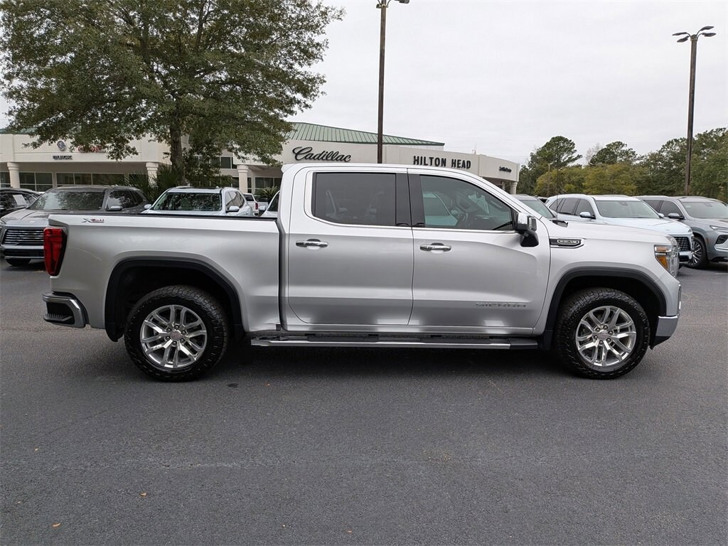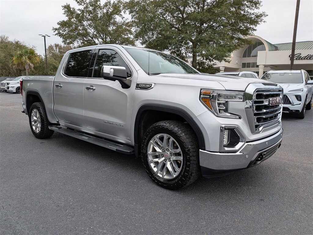 2019 Sierra 1500 SLT APPLE CARPLAY, CLEAN CARFAX HISTORY, REMOTE START, 4X4 FOUR WHEEL DRIVE AWD ALL WHEEL DRIVE, Sierra 1500 SLT, 4D Crew Cab, EcoTec3 5.3L V8, 8-Speed Automatic, 4WD, Quicksilver Metallic, Jet Black Leather. 4WD Clean CARFAX. EcoTec3 5.3L V8 8-Speed Automatic Odometer is 20423 miles below market average!You'll do better at Hilton Head Buick-GMC-Cadillac. 843-815-1500, serving Hilton Head Island, Bluffton, Beaufort and everyone coast to coast.