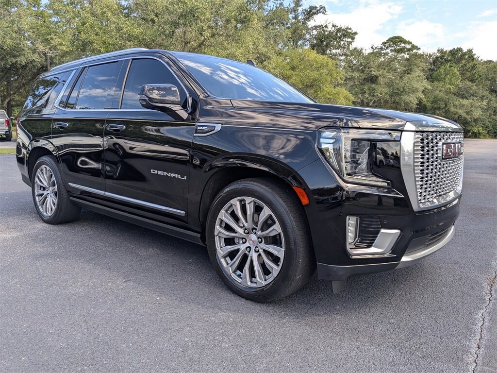 2021 Yukon Denali LOCAL TRADE IN, APPLE CARPLAY, BACKUP CAMERA, TECHNOLOGY PACKAGE, ONE OWNER, SUNROOF/MOONROOF, 3RD ROW SEATING, 4X4 FOUR WHEEL DRIVE AWD ALL WHEEL DRIVE, Rear Entertainment, Yukon Denali, 4D Sport Utility, EcoTec3 6.2L V8, 10-Speed Automatic with Overdrive, 4WD, Onyx Black, Teak/Light Shale Leather. CARFAX One-Owner. 4WD EcoTec3 6.2L V8 10-Speed Automatic with Overdrive Odometer is 53547 miles below market average!
