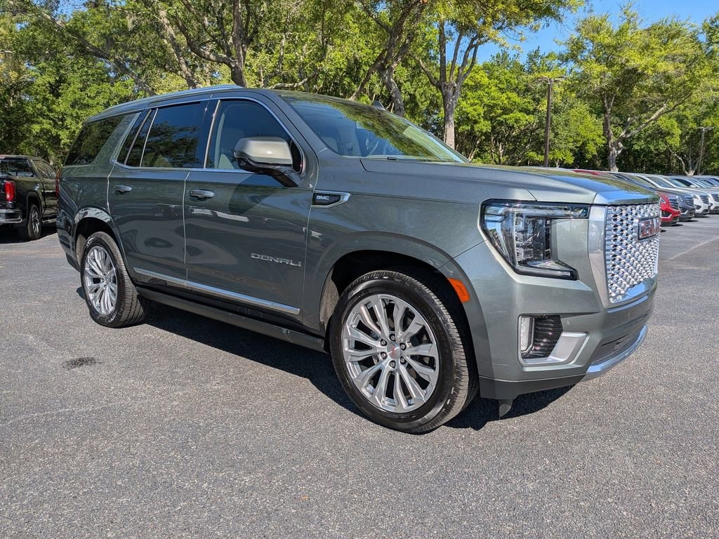 2024 Yukon Denali LOCAL TRADE IN, APPLE CARPLAY, CLEAN CARFAX HISTORY, ONE OWNER, REMOTE START, SUNROOF/MOONROOF, LEATHER SEATS, 3RD ROW SEATING, 4X4 FOUR WHEEL DRIVE AWD ALL WHEEL DRIVE, TOW PACKAGE TRAILER PACKAGE, Yukon Denali, 4D Sport Utility, EcoTec3 6.2L V8, 10-Speed Automatic with Overdrive, 4WD, Frosted Pine Metallic, Teak/Light Shale Leather, 12-Way Power Seat Adjusters, 15 Diagonal Multi-Color Head-Up Display, 2 Presets For Outside Rearview Mirrors, 3rd Row 60/40 Power-Folding Split-Bench Seat, Adaptive Cruise Control, Bose 14-Speaker Surround w/CenterPoint, Bright Front & Rear Door Sill Plates, Chrome Door Handles w/Body-Color Strip, Dual Exhaust System, Enhanced Automatic Emergency Braking, Floor Console, Galvano Bodyside Moldings, Hands-Free Power Programmable Rear Liftgate, HD Surround Vision, Heated 2nd Row Outboard Position Seats, Heated Driver & Front Passenger Seats, Heated Steering Wheel, Hill Descent Control, Inside Rear-View Auto-Dimming Mirror, Max Trailering Package, Outside Heated Power-Adjustable Mirrors, Perforated Heated & Ventilated Dr & Frt Pass Seats, Power Release 2nd Row Bucket Seats, Power Tilt & Telescopic Steering Column, Preferred Equipment Group 5SA, Rear Pedestrian Alert, Safety Alert Seat, Universal Home Remote, Wireless Charging. CARFAX One-Owner. 4WD Clean CARFAX. EcoTec3 6.2L V8 10-Speed Automatic with Overdrive