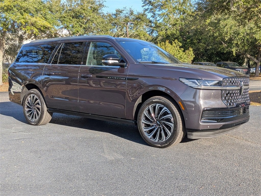 2025 Navigator L Black Label LOCAL TRADE IN, BLUETOOTH, APPLE CARPLAY, BACKUP CAMERA, SOUND PACKAGE SIRIUS XM SATELLITE RADIO, TECHNOLOGY PACKAGE, CLEAN CARFAX HISTORY, ONE OWNER, REMOTE START, REMOTE KEYLESS ENTRY, NAVIGATION SYSTEM NAV GPS, SUNROOF/MOONROOF, LEATHER SEATS, 3RD ROW SEATING, 4X4 FOUR WHEEL DRIVE AWD ALL WHEEL DRIVE, ALLOY WHEELS, Navigator L Black Label, 4D Sport Utility, 3.5L V6, 10-Speed Automatic, 4WD, Starlight Gray Premium Colorant, Blk Onyx W/Brandy Stitch, 28 Speakers, 4-Wheel Disc Brakes, A/V remote, ABS brakes, Adjustable pedals, Air Conditioning, AM/FM radio: SiriusXM with 360L, Apple CarPlay/Android Auto, Audio memory, Auto High-beam Headlights, Auto Htd & Ventilated Opulence Lthr Capt Chair, Auto Start-Stop Technology, Auto tilt-away steering wheel, Auto-dimming Rear-View mirror, Automatic temperature control, Brake assist, Bumpers: body-color, Delay-off headlights, Dual front impact airbags, Dual front side impact airbags, Electronic Stability Control, Emergency communication system: 911 Assist, Enlighten Theme, Exterior Parking Camera Rear, Front anti-roll bar, Front dual zone A/C, Fully automatic headlights, Head restraints memory, Headphones, Heated door mirrors, HVAC memory, Illuminated entry, Leather steering wheel, Lincoln Connect, Lincoln Premium Connectivity, Low tire pressure warning, Memory seat, Navigation system: Connected Navigation (1-year trial), Occupant sensing airbag, Overhead airbag, Panic alarm, Pedal memory, Power adjustable front head restraints, Power adjustable rear head restraints, Power door mirrors, Power driver seat, Power moonroof, Power steering, Power windows, Radio data system, Radio: Revel Ultima 3D AM/FM/HD Audio System, Rear air conditioning, Rear anti-roll bar, Rear audio controls, Rear window defroster, Remote keyless entry, Security system, Speed control, Spoiler, Steering wheel memory, Steering wheel mounted audio controls, Turn signal indicator mirrors, Wheels: 22 High-Gloss Ebony Aluminum. CARFAX One-Owner. 4WD 3.5L V6 10-Speed Automatic