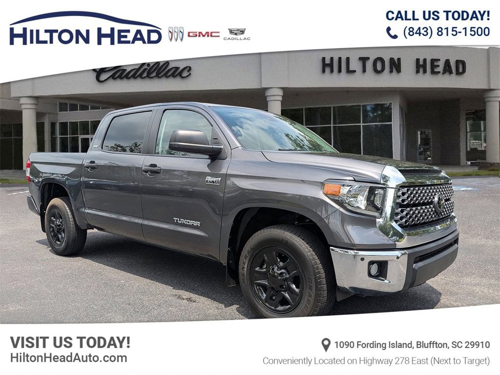 2021 Tundra SR5 LOCAL TRADE IN, Tundra SR5, 4D CrewMax, i-Force 5.7L V8 DOHC 32V LEV, 6-Speed Automatic Electronic with Overdrive, RWD, Lunar Rock, Black Cloth. RWD Clean CARFAX. i-Force 5.7L V8 DOHC 32V LEV 6-Speed Automatic Electronic with Overdrive Odometer is 13195 miles below market average!You'll do better at Hilton Head Buick-GMC-Cadillac. 843-815-1500, serving Hilton Head Island, Bluffton, Beaufort and everyone coast to coast.